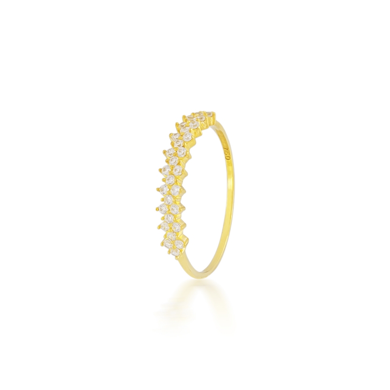 Anel em ouro 18k, 1/2 aliança tipo pavê com 32 zircônias brancas cravejadas.