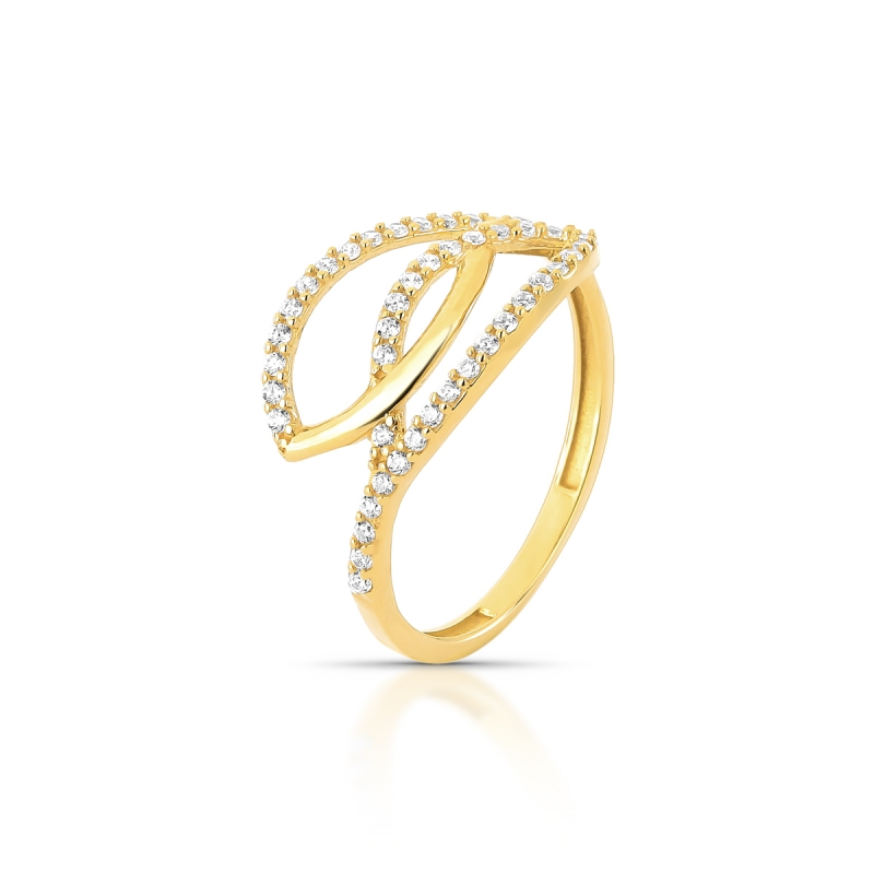 Uma joia de presença marcante que une o design orgânico à exuberância da alta joalheria. Este Anel em Ouro 18k destaca-se pelo seu design elaborado de folhas entrelaçadas, que envolvem o dedo com movimento e elegância. O diferencial luxuoso reside em sua cravação: são 48 zircônias brancas selecionadas, distribuídas minuciosamente sobre a silhueta das folhas para criar um pavê de brilho intenso.