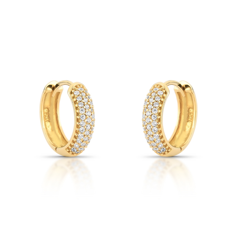 Uma joia desenvolvida para quem não abre mão de um brilho intenso e de um design luxuoso. Este Brinco em Ouro 18k, tipo argola, destaca-se por sua face frontal robusta, inteiramente cravejada com 03 fileiras paralelas de zircônias cor cristal. A disposição das pedras cria um efeito de "pavê" que captura a luz de todos os ângulos, proporcionando uma luminosidade incomparável ao rosto.