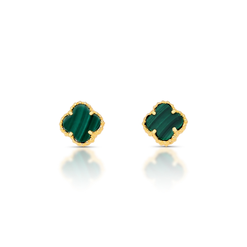 Traga a energia e a sofisticação do verde vibrante para o seu visual com este Brinco em Ouro 18k. Unindo o formato de trevo ao brilho da Malaquita natural, ele é o amuleto perfeito para quem busca estilo e elegância em uma joia leve.