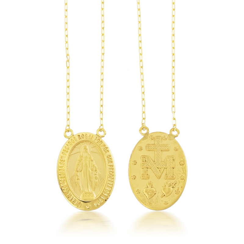 A medalha milagrosa de ouro 18k é um símbolo de fé, proteção e esperança, muito valorizada por quem busca uma conexão espiritual profunda e um acessório elegante. Inspirada na aparição da Virgem Maria a Santa Catarina Labouré, essa medalha carrega uma história de milagres e bênçãos, tornando-se um amuleto poderoso para quem acredita.