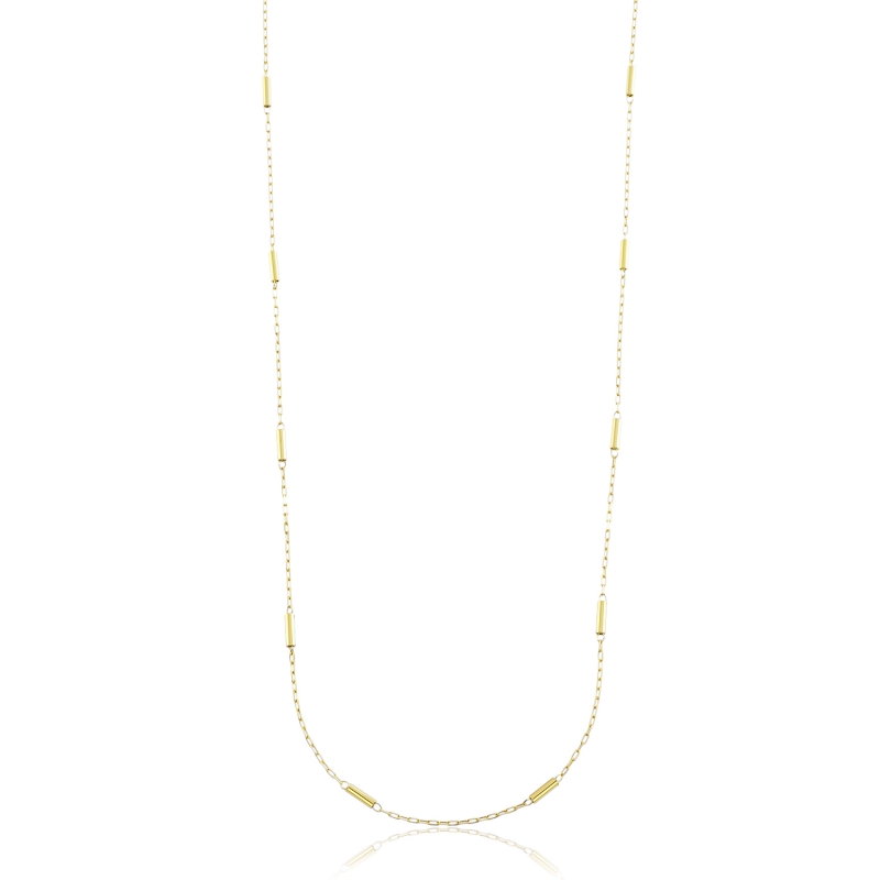 Uma peça que une o design clássico dos elos ao toque moderno da geometria. Esta Gargantilha em Ouro 18k apresenta a sofisticada malha Cartier, com tubinhos polidos intercalados a cada 25mm, criando um ritmo visual único e elegante no colo.
