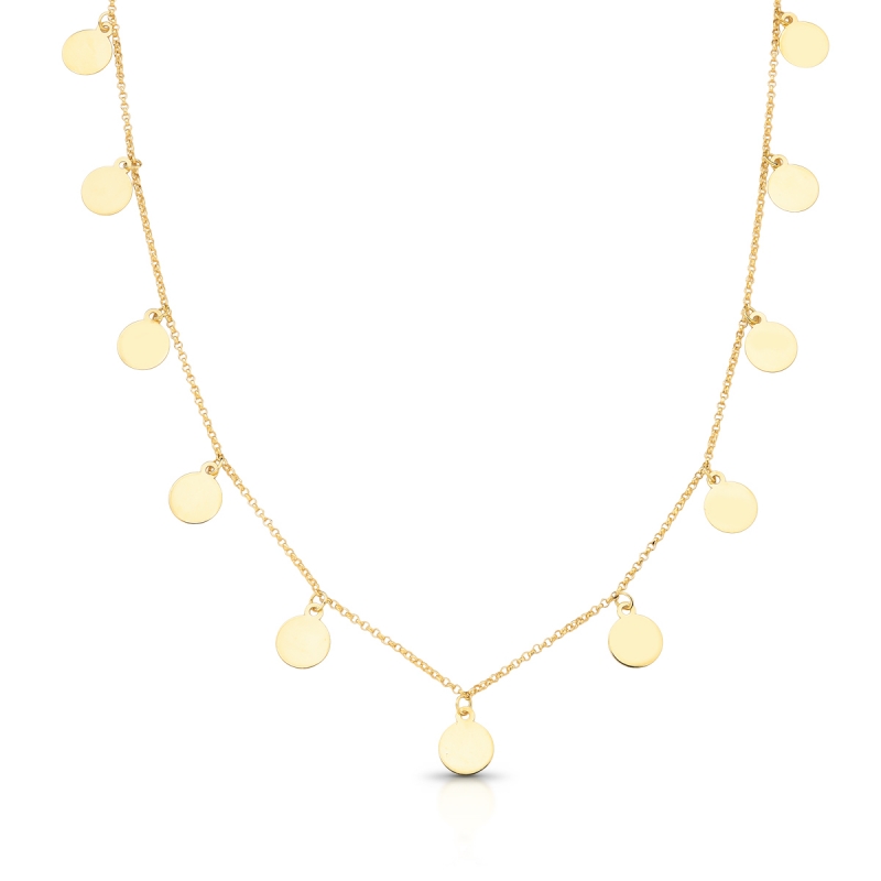 A escolha perfeita para quem busca um visual moderno, dinâmico e cheio de estilo. Esta Gargantilha Choker em Ouro 18k destaca-se por sua corrente delicada adornada com 11 medalhas circulares pendentes, distribuídas de forma harmoniosa por toda a extensão frontal da peça.