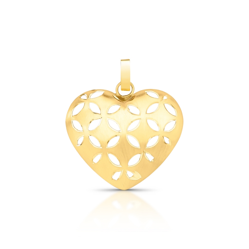 Design: Coração volumoso com padrão floral vazado.