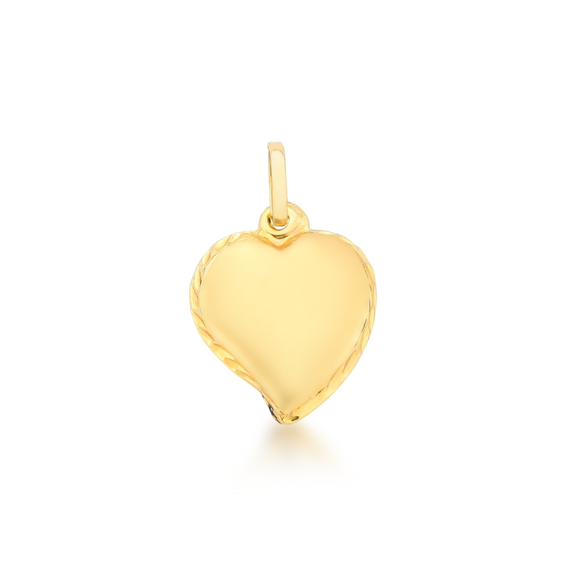 Uma joia que une volume e delicadeza em um design tridimensional encantador. Este pingente em formato de coração abaulado apresenta um trabalho artístico de recortes vazados em padrão de pétalas, que permitem a passagem da luz e criam um efeito visual único. O acabamento combina a sofisticação do ouro fosco acetinado na superfície com o brilho polido dos detalhes internos, resultando em uma peça de extrema elegância.