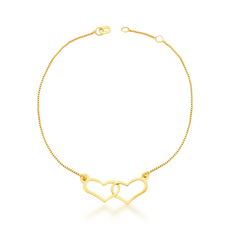 Pulseira Corações Entrelaçados Ouro 18k | Símbolo de União