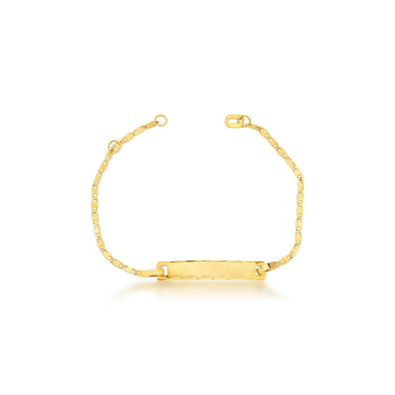 Ideal como Presente para Batizado ou Joia de Nascimento, a placa polida é perfeita para a Gravação do Nome ou da data especial do bebê, criando uma Pulseira Infantil Personalizada com profundo valor sentimental. Feita em autêntico Ouro Amarelo 750, é hipoalergênica conta com uma contra-argola que acompanha o crescimento da criança e com fecho seguro tipo boia, garantindo conforto e tranquilidade para o uso diário.